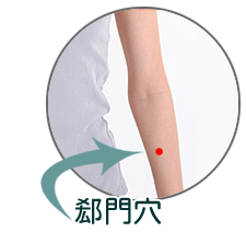 陽気がこもるときは血液を清くするツボで動悸・鼻出血に効果的な 門穴を刺激しましょう。 門穴は前腕の中央掌側にとります。